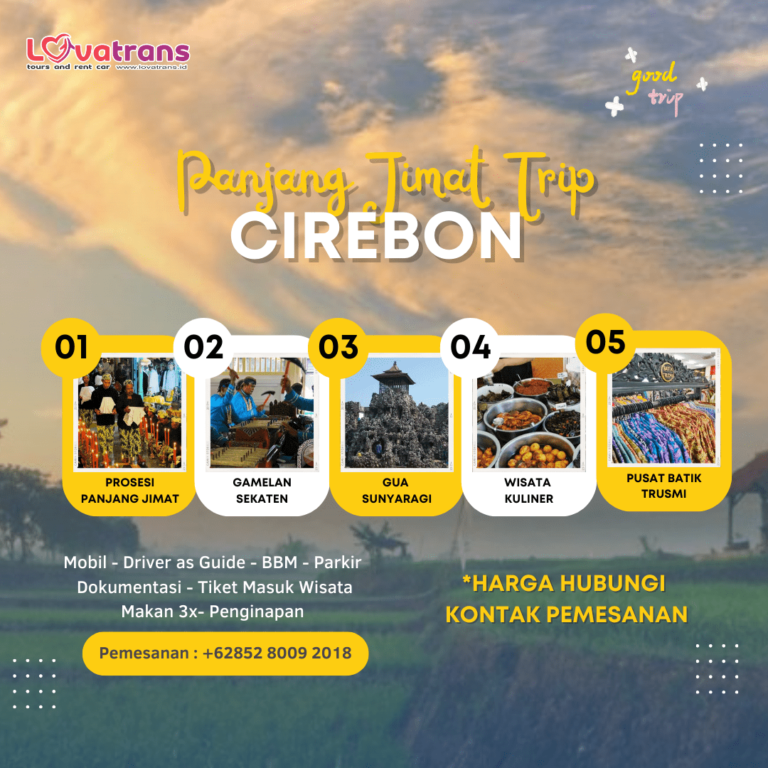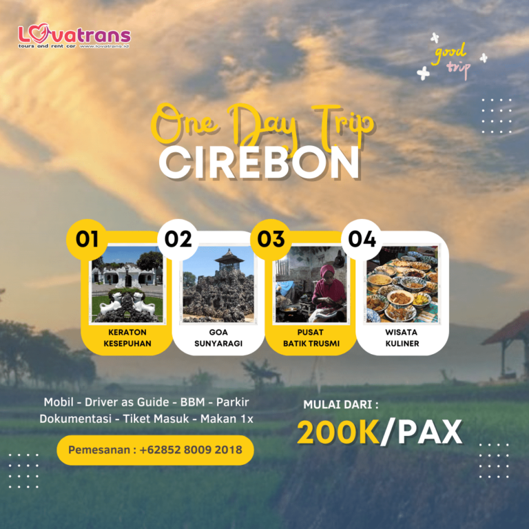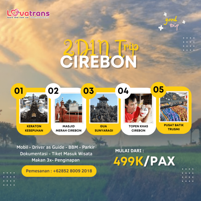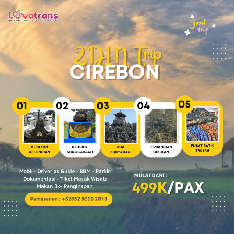 Bersama Lova Trans Sudah waktunya anda menghabiskan waktu dengan keluarga, teman, dan sahabat untuk berlibur ke Cirebon. Mengunjungi kota yang kaya akan budaya dan alamnya. Melepaskan kepenatan wisata di jogja. Kami tau jika berwisata di Jogja sangat berharga bagi anda, maka persiapkan diri anda untuk berpetualang bersama kami.